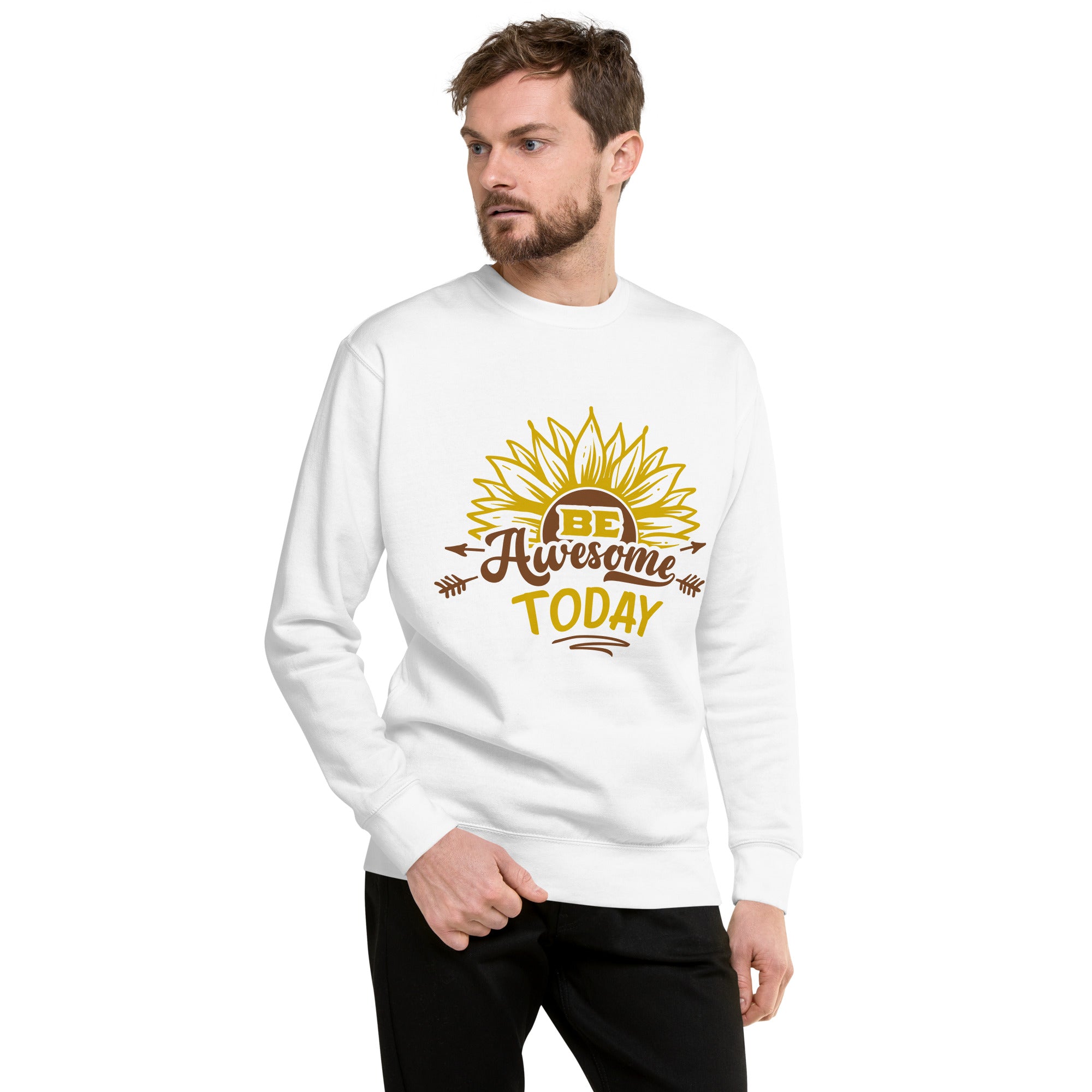 This Unisex Premium Sweatshirt is a great way to show off your positive attitude and encourage others to be awesome too! It features a classic crew neckline, long sleeves, and a comfortable fit. The bold graphic on the front reads "Be Awesome Today" in a fun font. The sweatshirt is made from high-quality materials that are soft and cozy, perfect for any casual occasion. Show off your awesome attitude with this stylish sweatshirt!